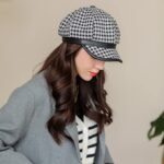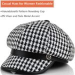 Step up your style game with this trendy houndstooth newsboy cap for women! Made from 100% soft and durable cotton, this hat ensures year-round comfort 🌸🍂❄️. Its classic black and white houndstooth pattern paired with a leather brim gives a vintage yet modern look, perfect for both casual and formal outfits.